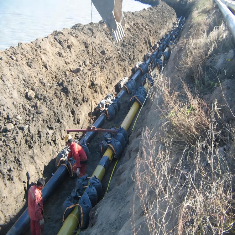 62彩集团安装起来非常*。 先用当低的砾石或沙子灌装压袋,然后沿管线分放,将压重袋压在管线上,然后回填。